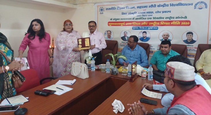 प्रोफेसर कुमार ने वैदिक शिक्षा, प्राचीन भारतीय शिक्षा प्रणाली एवं व्यवस्था के गौरवशाली परंपरा पर प्रकाश डालते हुए ब्रिटिश काल में भारतीय शिक्षा के ह्रास पर चर्चा की। विश्वविद्यालय के गांधी परिसर के निर्देशक प्रोफेसर प्रसुन दत्त सिंह ने भी संगोष्ठी को संबोधित किया एवं धन्यवाद ज्ञापन डॉ सरिता तिवारी के द्वारा किया गया।