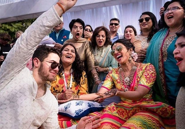 मेहंदी की रश्म के लिए देसी गर्ल का ड्रेस डिजाइन अबू-जानी और संदीप खोसला ने किया है। प्रियंका की शादी में उनकी बहन परिणीति चोपड़ा भी नजर आईं। एक फोटो में देसी गर्ल अपने और निक जोनास के पूरे परिवार के साथ नजर आ रही हैं। फोटों में परिवार के सभी सदस्य मस्ती के मूड में हैं।