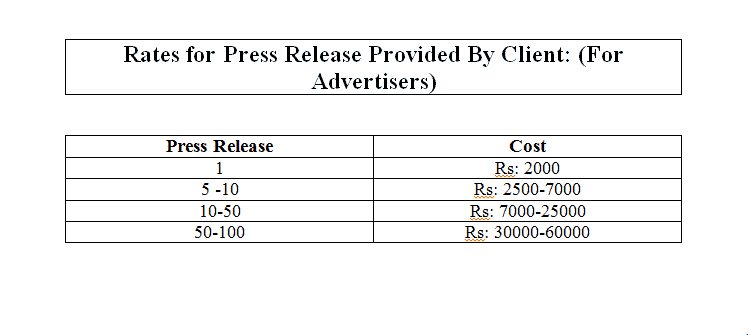 We also publish press releases on the portal. Here are the rates for publishing a press release on the website.